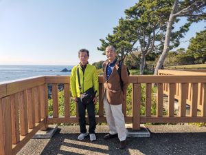 ジオパークガイドの会主催の捕鯨問題の変遷と題した講演会が開かれました。 開会前に講師の石川創先生をミニツアーに誘って戦争遺跡や南洋への出稼ぎの歴史を紹介しました。 |